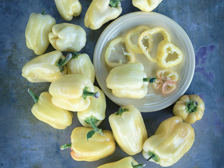 | Beautiful, blocky 3-4 inch peppers are a lovely cream color. They have a nice mild, sweet flavor and ripen to a beautiful reddish-orange | |