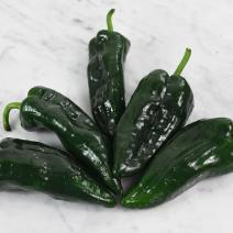 | One of the most popular chilis in Mexico! 3- to 6-inch heart-shaped fruit is usually of gentle heat, at around 2000 Scovilles. Used green, after roasting and peeling, it is the classic pepper for chili rellenos. Dried, the fruit turns a rich dark red-brown and may be ground into an authentic red chili powder. | |