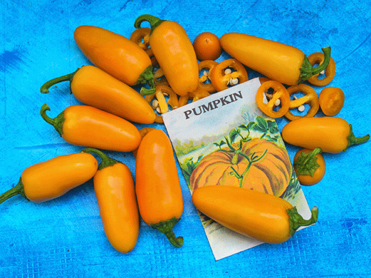 | A lovely glowing-pumpkin variety from New Mexico State University. This bright pumpkin-orange colored variety was bred using natural backcrossing techniques, resulting in an lightly spicy and super eye-catching fruit. | |