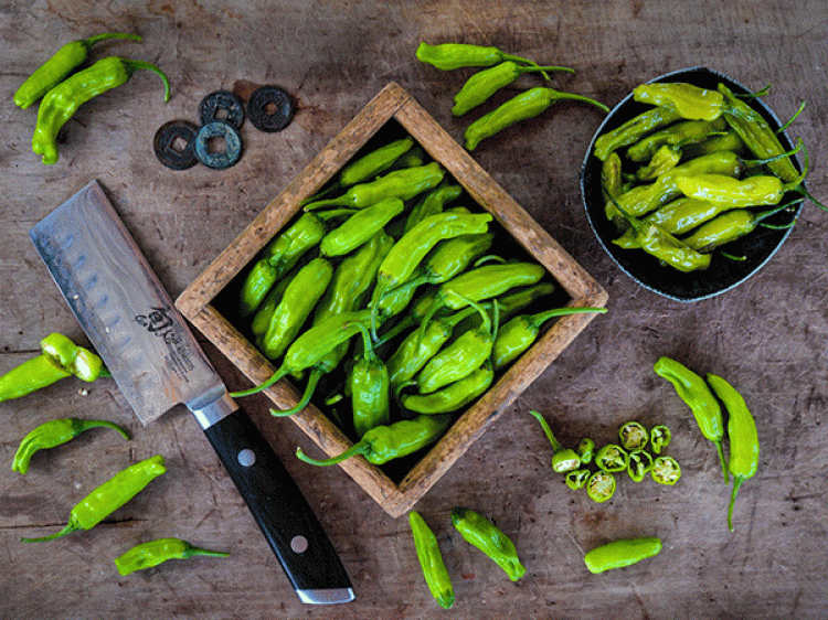 | A favorite old Japanese variety which produces 3 inches long, slightly wrinkled fruit that is perfect for making tempura and other traditional recipes. Fruit is emerald green in color, ripening to red, and mildly flavored with just a bit of spice. | |